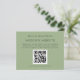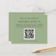 Receptáculo Verde de Casamento de Código QR Simples com Sage de Website, com este alternativo de 4,5" x 5,6". Disponível em um STOCK DE CARTÃO SEMI GLOSS 110 lb, que é a opção padrão (recomendada para convites, semelhante à espessura de um cartão postal) OU um STOCK DE PAPEL THINNER FINISH DE 80 lb FINISH (ideal para gabinetes). Os envelopes são um extra opcional e são ligeiramente maiores que o tamanho da placa. Torne conveniente que seus convidados vejam todos os detalhes e RSVP também digitalizando seu código QR levando ao seu site de casamento. Um simples design tipográfico perfeitamente personalizável. Personalize facilmente as palavras para você e substitua o código QR de amostra por seu próprio. Você também pode alterar as cores do texto e do plano de fundo se desejar, por meio da opção personalizar mais para corresponder ao seu tema de cor do casamento. Se precisar de ajuda com isso, por favor, me envie uma mensagem.