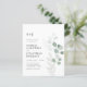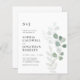 Orçamento Tudo em um Código QR RSVP Airy Eucalyptus Greenery Monograma Convite de Casamento. Nosso convite de casamento botânico barato apresenta uma elegante ramificação de eucalipto de cor d'água em tons claros e escuros ao lado de seu texto de convite e suas iniciais de monograma. A parte traseira do convite exibe o código QR do seu site de casamento, bem como o próprio URL do site, permitindo que seus convidados facilmente RSVP on-line e visualizem todos os detalhes normalmente enviados em um pacote de casamento. O URL do seu site de casamento pessoal pode ser facilmente transformado em um gráfico de código QR - diretamente no modelo de personalização - para substituir o gráfico QR de exemplo atualmente em vigor. Este convite de casamento ao estilo moderno foi concebido para ser elegante e consciente do orçamento... para não mencionar a poupança de tempo. Todo texto de exemplo pode ser facilmente revisado com suas próprias informações sobre o modelo de personalização.