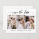 Código QR de Orçamento - Paisagem Horizontal Moderna e Elegante Três (3) Foto Salva o Magnete de Casamento de Data com tipografia de script com letra manual. O ímã para salvar o convite de data inclui tipografia de script e chic e design simples para a qual você pode adicionar sua fotografia personalizada de noivado.