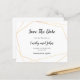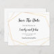 Código QR Simples E Dourado Geométrico Salvar A Data. Um alternativo de 4,5 pol x 5,6 pol com preço inferior. Disponível em um STOCK DE CARTÃO SEMI-GLOSS 110 lb, que é a opção padrão (mais espesso para convites), OU um STOCK de PAPEL THINNER FINISH 80 lb FINISH (ideal para gabinetes). Adicione seu código QR ao seu site de casamento no verso substituindo o código QR na amostra. Este elegante design tem uma simples estrutura geométrica dourada com texto preto. O texto é facilmente personalizado e as cores de fundo e texto podem ser alteradas se você desejar