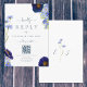 Cartão de resposta Rsvp de casamento floral Elegante primavera e azul de verão com o Código QR para o site de casamento. Com noiva de guião romântica e iniciais de monograma nobre. Flores de aquarela pintadas manualmente, incluindo flores silvestres com belos scripts elegantes de tipografia romântica para personalizar com a data de resposta do casamento e detalhes do site, incluindo o Código QR para rsvp online usando modelos fáceis de usar. Flores de campo incluindo flores de milho, papoilas, cosmos e me esqueçam de nãos com trabalho de arte de folhagem delicada pela artista Catherine Sweetman. A paleta de cores inclui o azul de girassol, azul empoeirado, azul esbranquiçado, azul marinho, roxo e tons verdes. Ideal para um jardim botânico ou para um casamento de verão em primavera. Encontrar itens correspondentes na elegante suíte de casamento azul floral de verão