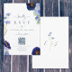 Cartão de resposta Rsvp de casamento floral Elegante primavera e azul de verão com o Código QR para o site de casamento. Flores de aquarela pintadas manualmente, incluindo flores silvestres com belos desenhos de tipografia romântica elegantes, incluindo as iniciais da noiva e do monograma do noivo, para personalizar junto com o casamento a data de resposta e os detalhes do website, incluindo o Código QR para rsvp online usando modelos fáceis de usar. Flores de campo incluindo flores de milho, papoilas, cosmos e me esqueçam de nãos com trabalho de arte de folhagem delicada pela artista Catherine Sweetman. A paleta de cores inclui o azul de girassol, azul empoeirado, azul esbranquiçado, azul marinho, roxo e tons verdes. Ideal para um jardim botânico ou para um casamento de verão em primavera. Encontrar itens correspondentes na elegante suíte de casamento azul floral de verão