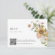 Código QR de RSVP de Girassol. Este cartão RSVP de na moda de casamento apresenta uma impressionante cor d'água rosa pintada à mão e flores silvestres poeirentas, lindos girassóis amarelos, e verde sábio organizado como uma coroa adorável que é perfeita para aqueles que amam bôho certeiro / elegância boêmica. Encontre itens correspondentes na Coleção de Casamento de Girassol Moderno.