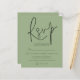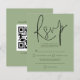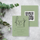 RSVP de Sage de Casamento de Código QR do Script de Orçamento Um alternativo de 4,5 pol x 5,6 pol com preço inferior. Disponível em um STOCK DE CARTÃO SEMI-GLOSS 110 lb, que é a opção padrão (mais espesso para convites), OU um STOCK de PAPEL THINNER FINISH 80 lb FINISH (ideal para gabinetes). Os envelopes são um extra opcional e são ligeiramente maiores que o tamanho da placa. O código QR do seu site de casamento está no verso, basta substituir o código de amostra. Uma tipografia de na moda set em preto para o título principal RSVP complementando o resto do texto que você pode personalizar facilmente.