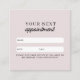 Uma bela maneira de reservar seu próximo compromisso para seus clientes com este cartão de compromisso profissional rosa. O cartão de compromisso do cliente pode ser personalizado para seu texto, código QR, identificador de mídia social e detalhes comerciais.