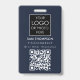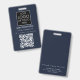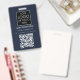 Um moderno crachá de negócios minimalista personalizado com logotipo de negócios e código QR. Personalize com seu logotipo, código QR e detalhes para criar seu crachá de negócios único, azul e branco. Personalize ainda mais com um fundo ou fonte de cor personalizados.