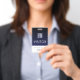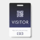 Mantenha seus visitantes e convidados facilmente identificados com este crachá personalizável de visitantes com o logotipo da empresa. O design azul e branco do marinho apresenta um logotipo e texto personalizáveis que lê "Visitor" em uma fonte simples. Um código QR facilita o acesso de convidados a informações importantes sobre seu recurso ou evento. O texto na parte inferior lembra aos visitantes que, por favor, devolvam o crachá antes de saírem. Este crachá é perfeito para empresas, hospitais, escolas, museus, atrações e muito mais.
