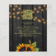 Celebração de casamento e na moda de recepção em um único modelo de convite do ORÇAMENTO com código qr para o website sobre fundo de madeira marrom-escura apresentando grandes buquês de girassol de ouro amarelo, cordas de luzes cintilantes e um roteiro falsa de tipografia de ouro. ++++++++++++++++ Fácil de personalizar com seus detalhes e gerou automaticamente o CÓDIGO QR para detalhes e para o rsvp online! +++++++++++ O convite é adequado para casamentos em celeiro de jardim ao ar livre. +++++++++++++++++++++++++++++++ LEIA ISTO ANTES DE COMPRAR! Este é um cartão de casamento de barato orçamentário impresso em uma folha de papel (cada folha tem um cartão). +++ Para obter a melhor qualidade de preço, nosso conselho é escolher o tipo de papel Semi-Gloss (é espesso o suficiente para ser usado para papelaria) +++ Se você precisar de envelopes, escolha a OPÇÃO ENVELOPE. ++ Verifique duas vezes todas as informações e a ortografia do seu texto porque você receberá exatamente o que você vê - ninguém mais verificará nada antes de imprimir. +++ Esta placa foi projetada para o tamanho de 4,5" x 5,6". Caso você escolha outro tamanho do cartão e o texto saia da página, tudo precisa ser corrigido antes de adicionar o produto ao carrinho. Peça ajuda ao Serviço de Design ao Vivo.