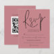 Código QR de Orçamento Casamento Rosa Empoeirado RSVP. Uma alternativa de orçamento MENOR 4,5” x 5,6”. Disponível em PAPEL CARTÃO 110 lb SEMI-BRILHANTE, que é a opção padrão (mais grosso para convites), OU PAPEL 80 lb ACABAMENTO SEDA MAIS FINO (ideal para inclusões). Os envelopes são opcionais e são ligeiramente maiores que o tamanho do cartão. O código QR do seu site de casamento está no verso, basta substituir o código de exemplo. Um conjunto tipográfico elegante em preto para o título principal RSVP complementando o restante do texto, que você pode personalizar facilmente.