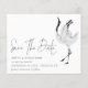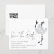 Um valor para o alternativo do ORÇAMENTO em tamanho menor de 4,5 x 5,6" de semirbrilho de 110 lbs, que é de espessura semelhante a um cartão postal (no entanto, não é adequado para uso como cartão postal). POR FAVOR, OBSERVE QUE HÁ UM convite por folha. Código QR De Script De Painel De Orçamento Salva A Data. Adicione seu código QR ao seu site de casamento no verso substituindo o código QR na amostra. Um design contemporâneo minimalista com Save The Date em um roteiro moderno, uma bela ilustração de pássaros à direita. O resto do texto que você pode personalizar facilmente.
