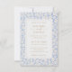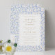 Chic, fresco e brincalhão. Este maravilhoso convite de casamento de dois em um inclui uma solicitação de RSVP no verso com o código Qr. Inclui um conjunto de fontes modernas e de tendências, contra um fundo esbranquiçado e um quadro floral azul e branco empoeirado. O padrão floral é repetido no verso, assim como texto personalizado e código QR. Cheeky e divertido. Personalize para fazer isso seu.