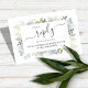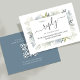 Este design apresenta um cartão de registro QR RSVP online de cerâmica floral, com um elegante modelo poeirento de flores azuis, uma resposta de convidado do website de cor aquosa verde, rosas folhas de folhagem respiratória de bebê, um script de caligrafia de na moda simples, link de URL digitalizável, romântico elegante branco, cartão de resposta de inserção clássico personalizado, com um estilo botânico romântico suíte de papelaria floral azul