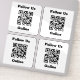 Quatro adesivos com código QR e com a mensagem "Sigam-nos online". Substitua o URL do Código QR pelo seu próprio link de site.
