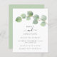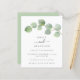 Código QR Eucalyptus Elegante de Orçamento Salve a Data A preço de orçamento SMALLER 4,5" x alternativo 5,6". Disponível em um STOCK DE CARTÃO SEMI-GLOSS 110 lb, que é a opção padrão (mais espesso para convites), OU um STOCK de PAPEL THINNER FINISH 80 lb FINISH (ideal para gabinetes). Adicione seu código QR ao seu site de casamento no verso. Um galho elegante de eucalipto em verde com um toque de ouro flui de cima à direita. Personalize facilmente o texto para seus próprios detalhes. Você também pode alterar estilos e cores de texto, bem como as cores de fundo, por meio da opção personalizar mais, se desejar.