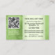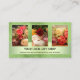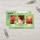 Cartão de visita com suas próprias fotos personalizadas (opcional), enquadradas por um design verde. No verso, você pode adicionar seu código QR para WiFi grátis, promoções especiais ou outra foto. Um belo cartão de visita para um armazém verde ou orgânico/natural, ou florista, por exemplo. Você também pode transformar este cartão em um certificado de presente.