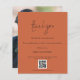 Obrigados Terraços da Galeria de Fotos de Casamento de Código QR Script. Um alternativo de 4,5 pol x 5,6 pol com preço inferior. Disponível em um STOCK DE CARTÃO SEMI-GLOSS 110 lb, que é a opção padrão (mais espesso para convites), OU um STOCK de PAPEL THINNER FINISH 80 lb FINISH (ideal para gabinetes). Os envelopes são um extra opcional e são ligeiramente maiores que o tamanho da placa. Um design de tipografia minimalista com um script de estilo de letra de na moda definido para Obrigado. No verso, substitua a imagem por sua favorita do dia como guardiã para seus convidados. Personalize facilmente o resto do texto com sua mensagem e nomes e substitua a amostra de código QR por sua própria guia para sua galeria de fotos de casamento online.