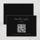 Cartão de RSVP de casamento preto moderno, simples e minimalista com código QR.