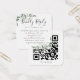 Você não precisa se preocupar com os retornos de RSVP perdendo no e-mail quando você convida convidados para RSVP on-line. Crie um código QR que envia os convidados diretamente para o seu site de casamento e adicione quaisquer instruções importantes à frente do cartão. **LEIA ANTES DE ENCOMENDAR** Se você fizer alterações na forma ou no tamanho ou escolher outro produto e o design for cortado de alguma forma ou não parecer direito na página, você precisará usar o Serviço de Design ao Vivo para que alguém ajuste o layout para você, a menos que você se sinta confortável fazendo isso sozinho. Seu pedido vai diretamente para as impressoras, de modo que o que você vê na tela é o que será impresso e enviado a você. Com isso em mente, por favor, verifique também triplamente se há erros de ortografia ou informações incorretas antes de fazer seu pedido.