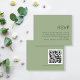 Simples fazer de gabinete RSVP de Casamento Verde de Sage de QR é conveniente que seus convidados respondam digitando seu código QR que leva ao seu site de casamento. Um alternativo de 4,5" x 5,6" compatível com o orçamento. Disponível em um STOCK de PLACA SEMI GLOSS 110 lb ou um STOCK de PAPEL THINNER SATIN FINISH 80 lb. Os envelopes são um extra opcional e são ligeiramente maiores que o tamanho da placa. Totalmente personalizável. Personalize facilmente as palavras para si próprio e substitua o código QR de amostra no verso pelo seu próprio. Você também pode alterar as cores do texto e do plano de fundo se desejar, por meio da opção personalizar mais para corresponder ao seu tema de cor do casamento. Se precisar de ajuda com isso, por favor, me envie uma mensagem.