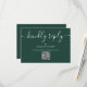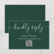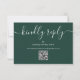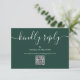 Um simples e elegante cartão de resposta RSVP com código QR verde esmeralda com tipografia script. Concebido por Thisisnotme©