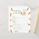 Convites para chuveiros de bebês neutros em termos de gênero. Apresentando o ditado "UM PEQUENO BUNNY ESTÁ A CAMINHO!", uma ilustração de um coelho aquoso (coelho) com cenoura em patas, e muitas cenouras cor de laranja. Itens correspondentes disponíveis.