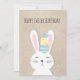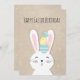 As cores pastel de tenda e a paleta de primavera criam o humor de feriado e o coelho de desenho animado faz este design giro.