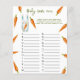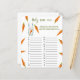 Convites para chuveiros de bebês neutros em termos de gênero. Apresentando o ditado "UM PEQUENO BUNNY ESTÁ A CAMINHO!", uma ilustração de um coelho aquoso (coelho) com cenoura em patas, e muitas cenouras cor de laranja. Itens correspondentes disponíveis.