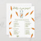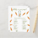 Convites para chuveiros de bebês neutros em termos de gênero. Apresentando o ditado "UM PEQUENO BUNNY ESTÁ A CAMINHO!", uma ilustração de um coelho aquoso (coelho) com cenoura em patas, e muitas cenouras cor de laranja. Itens correspondentes disponíveis.