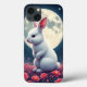 Um coelho fofo sentado num campo de flores cor-de-rosa sob o luar sonhador, os detalhes delicados criam um sentimento quente e confortável.