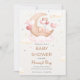 convite para chás de fraldas, fofo, coelho, lua crescente, rosa, balão, chá de fraldas moderno, chá de fraldas elegante,