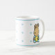 Caneca clássica com imagens de um coelho doce do bebê (vista dianteira e lateral). Este coelho adorável está vestindo footed-pijamas azuis com uma luz - babador amarelo. Outros estilos, tamanhos e cores disponíveis.