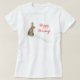 Coelho bonito com trilhas na camiseta festiva de inverno da neve. Personalize com suas próprias saudações ou palavras lendo Feliz Feriados.