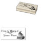 Conte a todos de qual biblioteca seu livro veio com esse selo de borracha de madeira apresentando uma ilustração antiga de um coelho sentado em uma pilha de livros! Use o menu à esquerda para personalizar o selo do livro coelho adicionando seu nome! Escolha entre uma matriz de diferentes opções de tinta colorida.