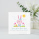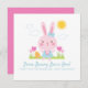 Um cartão de Páscoa fofo, personalizado, cor-de-rosa, com um coelho rosa de Páscoa rodeado por Ovos e tulipas de Páscoa. Bonita para uma filha ou neta. Projetado para você pelo Blackberry Boulevard.