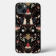 Uma ilustração de arte folclórica com o tema da época da Primavera. Este padrão contínuo tem elementos de flores modernas caprichosas, coelhos, beija-flores, andorinhas, borboletas e libélulas. O fundo preto adiciona drama e destaca os elementos da arte.