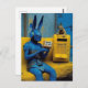 Arte estranha e excêntrica gerada por IA em tons de azul e amarelo coelhos em uma fábrica abandonada