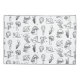 Uma mala com um design de joabt. A trabalho de arte mostra caracóis e cogumelos dispostos em um padrão.
