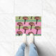Cogumelos e tapete de porta cor-de-rosa e verde.
