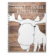 Este caderno é imprimido com um design desenhado mão do fim-acima dos alces em um fundo de madeira da prancha.