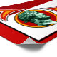 Baseado em alguns posters e designs antigos de Cola com uma mistura de arte nouveau, e história britânica A torre da igreja no fundo é Rua. Martins no campo, Londres, Reino Unido. O batedor é da porta da Catedral de Durham, no Reino Unido, construída em 1018 A.D. O perfil é do Imperador Romano Hadrian, que construiu um muro através da ilha da Britânia em 122 A.D., completou 128 A.D.