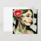 Bonito mulher com flor rosa em sua colagem de arte capilar.