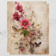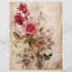 Um belo papel com flores a cor de água em burgundy, rosa e texto, perfeito para raspagem e decor. Borboletas jogadas na mistura. Grunge Floral 8