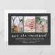 Belo cartão postal de anúncio de casamento com espaço para três das suas fotos favoritas de casamento! Somos casados e escrevemos em um belo roteiro de caligrafia branca contra uma cinza escura com um visual fraco de mármore. Adicionem também seus nomes e data de casamento, e no verso, uma nota pessoal para todos os seus entes queridos!