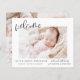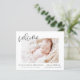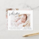 Colagem de Fotos Elegante de Anúncio Simples de Bebê do Orçamento que tem uma foto na frente e 4 Fotos no verso. As cartas contêm uma tipografia cursiva escrita moderna, escrita à mão, que é elegante, simples e moderna para ser usada por um bebê recém-nascido ou por uma menina enviada pela mãe e pelo pai da criança criança para a família e os amigos.