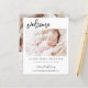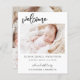 Colagem de Fotos Elegante de Anúncio Simples de Bebê do Orçamento que tem uma foto na frente e 4 Fotos no verso. As cartas contêm uma tipografia cursiva escrita moderna, escrita à mão, que é elegante, simples e moderna para ser usada por um bebê recém-nascido ou por uma menina enviada pela mãe e pelo pai da criança criança para a família e os amigos.