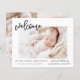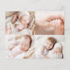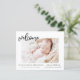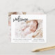 Colagem de Fotos Elegante de Anúncio Simples de Bebê do Orçamento que tem uma foto na frente e 4 Fotos no verso. As cartas contêm uma tipografia cursiva escrita moderna, escrita à mão, que é elegante, simples e moderna para ser usada por um bebê recém-nascido ou por uma menina enviada pela mãe e pelo pai da criança criança para a família e os amigos.
