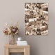 Mostre suas fotos neste padrão de poster com tema fotográfico, com um fundo de equipamento de câmera vintage e 17 de suas próprias imagens. Um arranjo disperso de quadros sobrepostos cria um padrão repetitivo que dá à design uma vibração artística relaxada, com um tom de sépia para adicionar aquele olhar brilhante vintage. Antes de carregar as suas imagens, siga estas INSTRUÇÕES: Adicione uma tonalidade de cor às suas fotografias para corresponder ao fundo sépia do design, utilizando um editor de fotografias gratuito como o LunaPic. Basta carregar sua foto, selecione 'Filtro' e 'Tinta de cor'. Digite o número de cor #725037 e aplique a tonalidade. Salve o arquivo. É isso, agora você está pronto para carregar suas fotos coloridas para o modelo Zazzle. Assim que as suas imagens forem importadas, a sua posição poderá ser ajustada para se adequar ao quadro, editando na ferramenta design. basta clicar na camada de máscara de fotos à esquerda e escolher 'Editar Máscara' à direita. Use a opção de transferência técnica do Zazzle ou a ID1066 de pesquisa para ver outros produtos pré-projetados com este padrão.