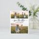 Orçamento elegante e moderno boho preto e branco 3 foto colagem casamento salvar a data lançamento personalizado barato baixo orçamento paper. O modelo de design minimalista de chic apresenta três (3) fotos de casal e elegante script de caligrafia cursiva de caligrafia com pincel "Save the Date" em preto sobre cor branca de fundo. Se precisar de ajuda ou itens correspondentes, entre em contato com o designer.