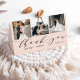 Este cartões de agradecimentos elegante apresenta 3 fotos com "obrigado você" em roteiro de caligrafia junto com nomes de casais e data de casamento.