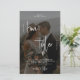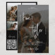 Simples e moderno roteiro de caligrafia com assinatura multifotografia barato BUDGET convite para casamento com texto branco e cobertura negra transparente com nomes de noivas e noivos. ++++ Fácil de personalizar com sua foto na frente e na colagem de 4 fotos e o CÓDIGO QR (gerado automaticamente com o link do URL) no seu site na parte traseira. ++++++++ Este convite de casamento de eterno é adequado para cerimônias e recepções casuais minimalistas.